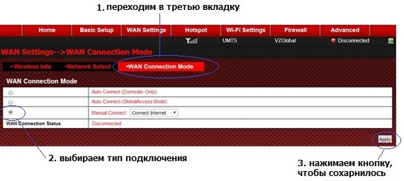 WAN Connection Mode (Auto Connect (Global Access Mode).