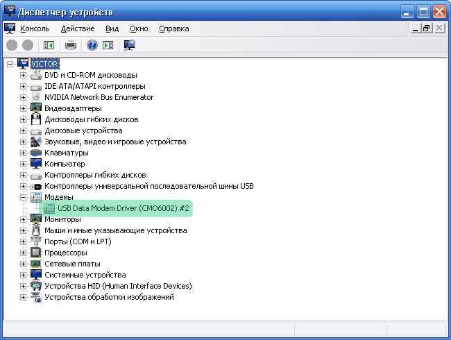 После установки программного обеспечения, необходимо удостоверится, что Ваш модем правильно установился и определился операционной системой Windows XP. Для этого Вам нужно зайти в "Диспетчер устройств".
